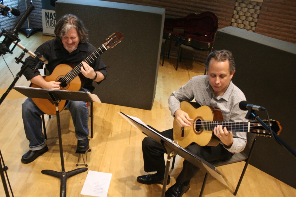 Guitarists Robert Thompson and Joey Butler have been performing around Nashville as Duo Sudeste for several years and recently released their first album. The pair took a Portuguese name for their group, a fitting name given that their repertoire leans heavily on the Latin guitar tradition. They brought a program of tunes from Spain, Brazil, Mexico and Cuba to Studio C.